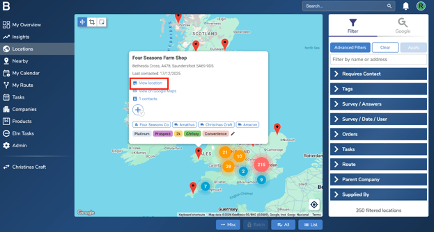 - Click ‘View Location’ to open the actions page.