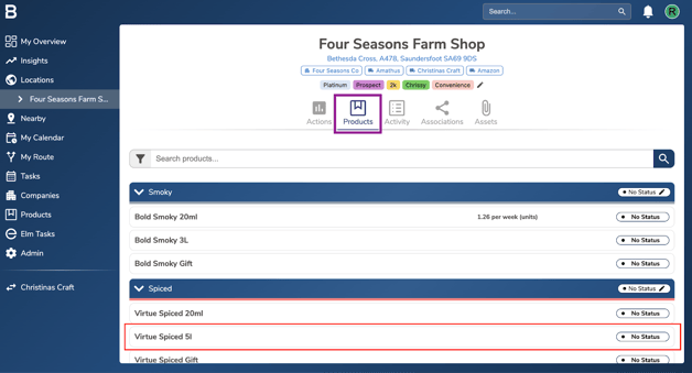 Go to the ‘Locations’ page in Bowimi and select the location you want to add or update the product status for.