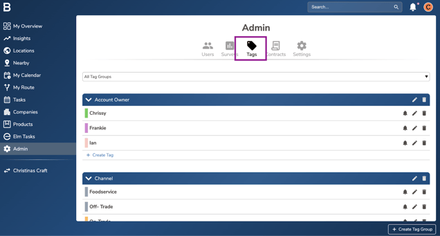 - Click on the Tags tab to access the current tags active on the platform.