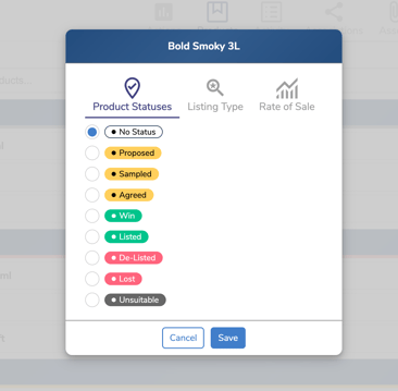 - Click on the product you’d like to update. If needed, update the product status for that location by selecting the appropriate status or leave it as Default if you don’t wish to change it.