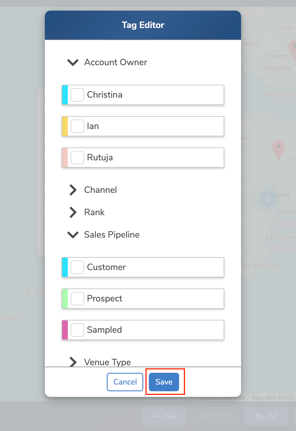 - Select the tags you want to apply to the location, then click “Save” to update the location with your selected tags.