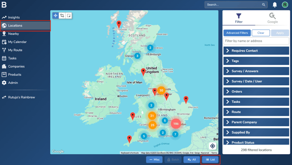 - Navigate to the Locations page in your account and select “List” to view locations in a list view.