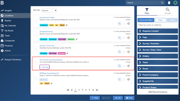 This article explains how to add Tags to a single location in Bowimi. Tags allow you to organise and track key information related to each location, helping you quickly understand their status, progress, or any important information at a glance.
