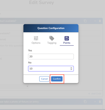 Next, click on the new third tab called “Points”. Assign the points to each answer and click "Confirm" to save the survey points.