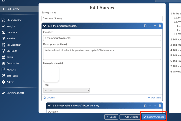 Once done, click "Confirm Changes" at the bottom to save the survey with updated information.