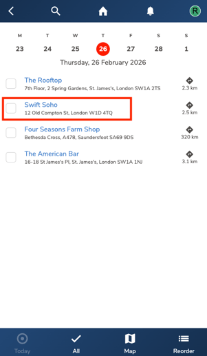 Once submitted, a tick will appear next to the location to indicate that it has been visited.