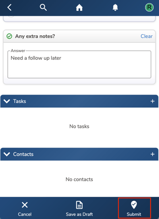 Fill in the survey and click “Submit” once completed to record the visit.