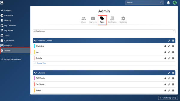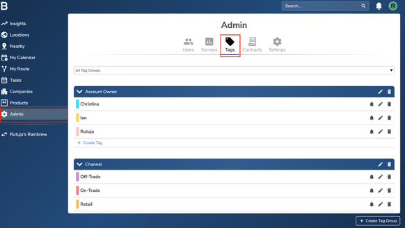 - Navigate to the “Admin” page in your account and click on the “Tags” tab.