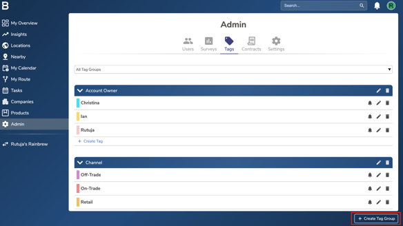 - Find the group you want to create a tag in and click “Create Tag”.