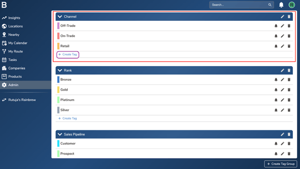 - If you select ‘Location’, the tag group will be visible under Tags in the Admin tab.