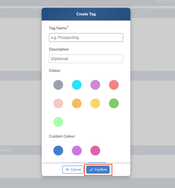 - Name the tag and choose a colour so it’s easily identifiable. Once you’re happy with it, click “Confirm” to create the tag, then repeat the same process for any additional tags you’d like to set up.