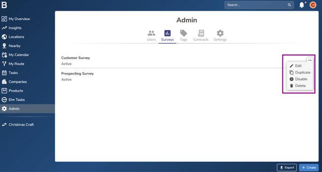 Click on 'Surveys' tab and click on the “...” next to the survey to edit.