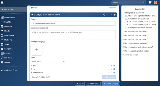 Click “Confirm changes” to save the edits on the survey and set it live for the team.