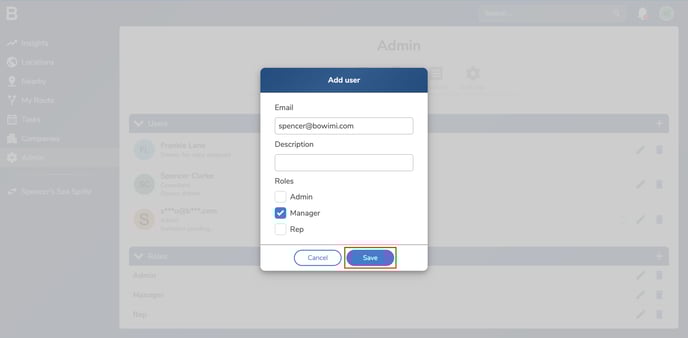 Click ‘Save’ to invite the new user