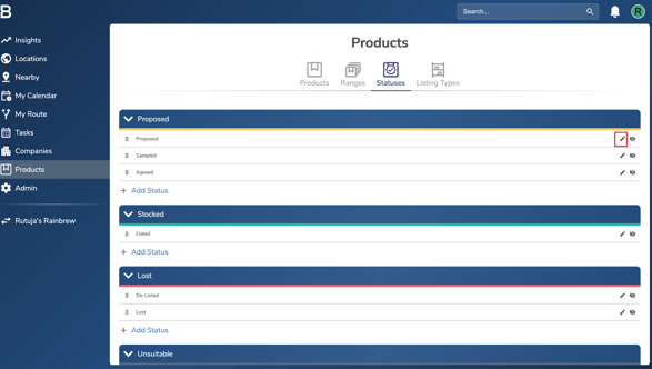 - You must have Admin or Manager access to manage product statuses.