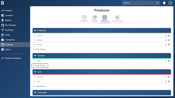 ii. To add a new product status, click ‘Add Status’ in the relevant group, enter the status name, and then click ‘Save’ to confirm.