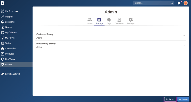 Filter the export down by survey, time frame, and user if needed and click "Export".