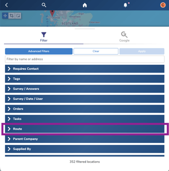 Under the Routes Filter, click on “Someones’ Route” and select your name and date scheduled for visit.