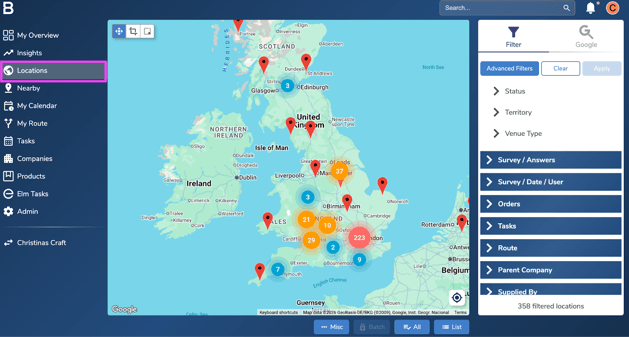- After filtering the locations, click ‘All’ at the bottom of the screen and next click the ‘Batch’ option beside it.